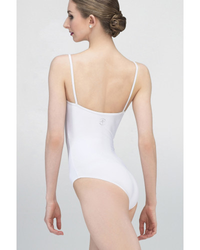 This classic thin-strap leotard features a traditional round neckline and moderate leg cut, perfect for any level of dance study.
